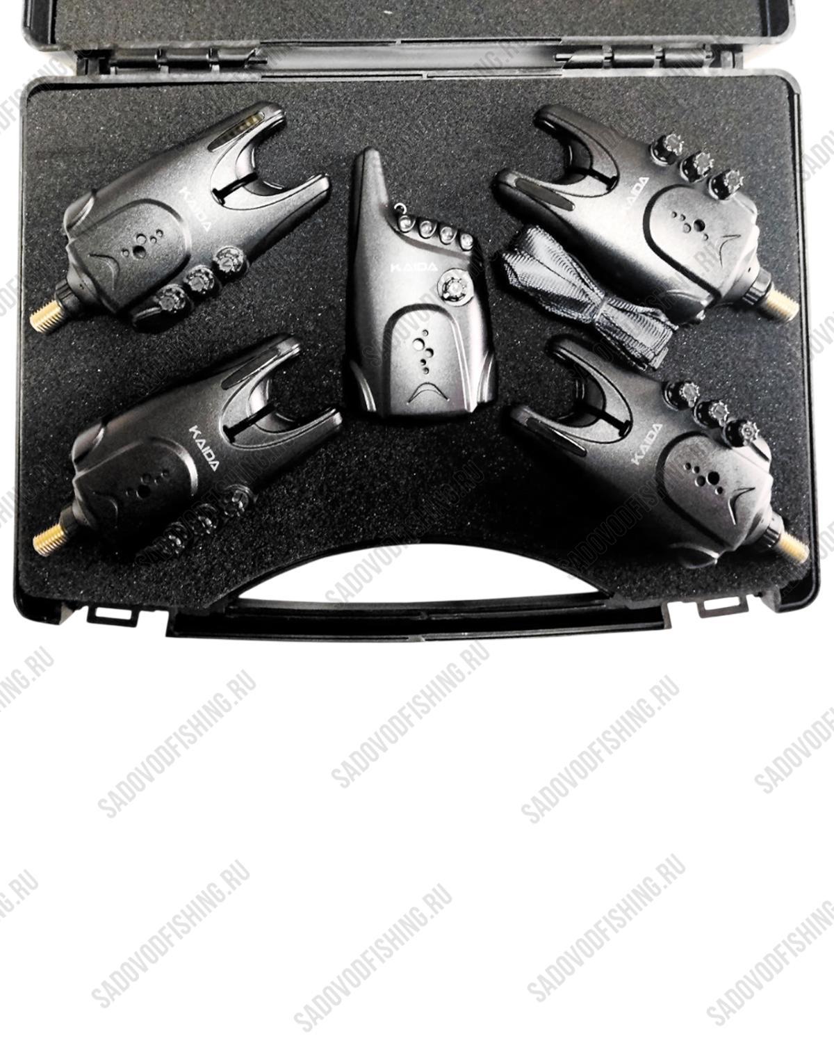 Набор сигнализаторов в кейсе Kaida X3-Pro - оповещает рыбака о малейшем прикосновении рыбы к приманке. В набор входит 4 сигнализатора с разными цветами индикатора для более удобного использования, регулировка тональности, регулировка громкости звука, регулировка чувствительности, пейджер с индикатором сработавшего сигнализатора, жёсткий кейс для переноски. Сигнализатор имеет настройку чувствительности, что позволит настроить его как на волнах, так и в штиль, настройку тональности, что поможет настроить каждый сигнализатор под свой тон для удобства рыбалки. На сигнализаторе есть индикатор который будет мигать ещё некоторое время после звукового оповещения.