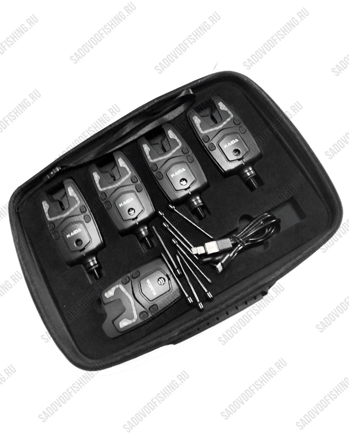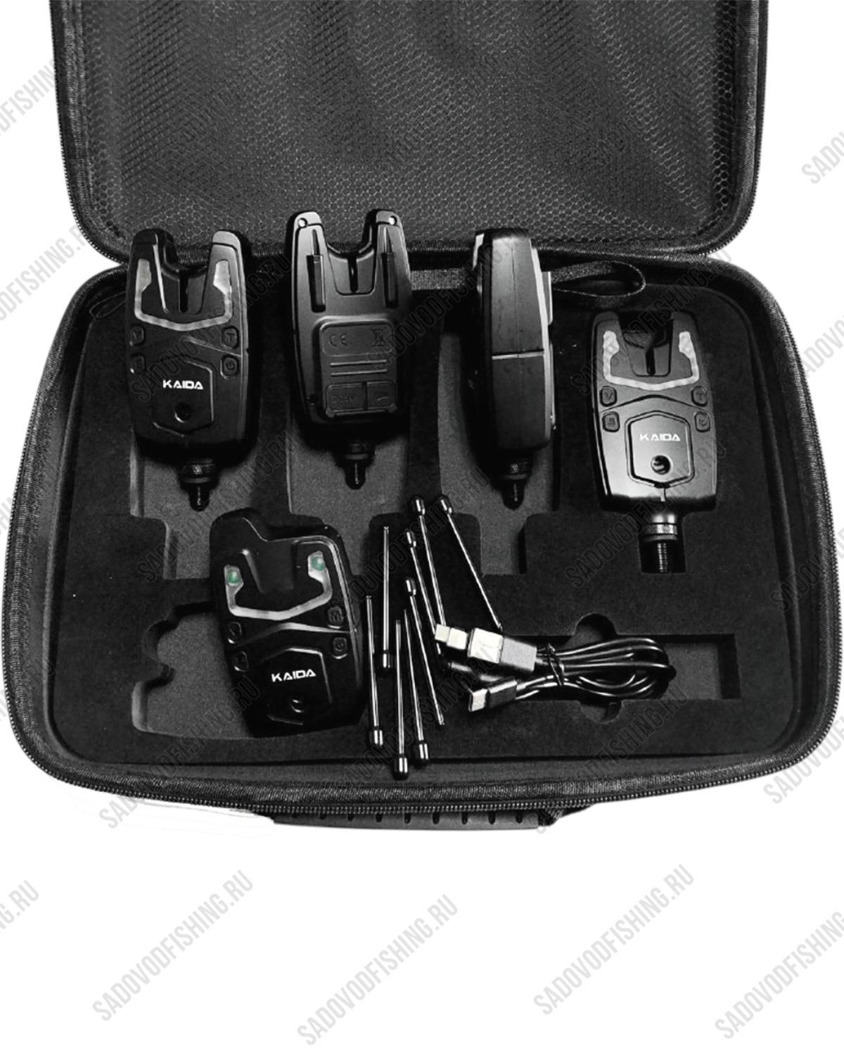 Набор сигнализаторов в сумке Kaida BA-900-1 - оповещает рыбака о малейшем прикосновении рыбы к приманке. В набор входит 4 сигнализатора. Имеет регулировку тональности, регулировку громкости звука, регулировку чувствительности, пейджер с индикатором сработавшего сигнализатора, жёсткий кейс для переноски. Сигнализатор обладает настройкой чувствительности, что позволит настроить его как на волнах, так и в штиль, благодаря этому можно удобно настроить каждый сигнализатор под свой тон, для удобства рыбалки.