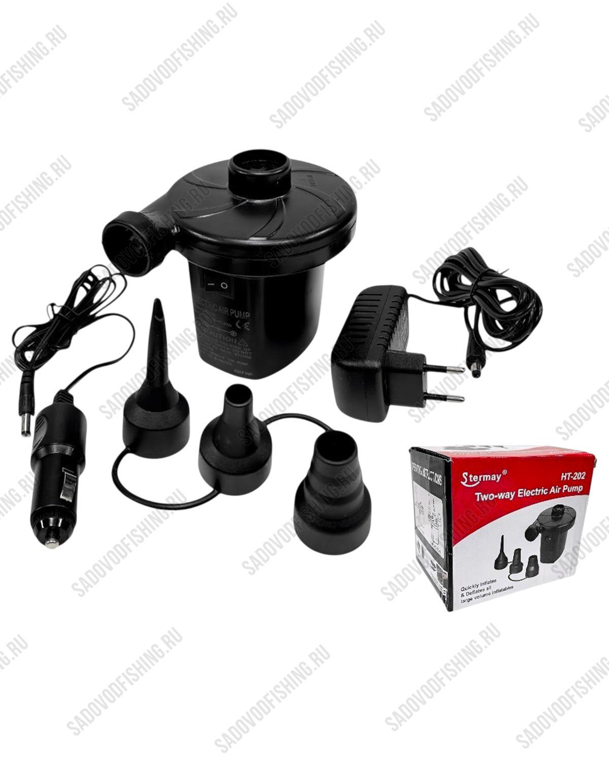 Насос электрический Osprey HT-202 - предназначен для накачивания и сдувания надувных лодок, кроватей, матрацев, диванов. Так же подойдёт и для более мелких изделий такие как: мячей, камер, спасательных кругов и жилетов. Используются 3 специальные насадки-переходника различного диаметра, которые входят в комплект. Насос электрический рассчитан на большой объем, а не на высокое давление. Универсальное питание позволяет использовать насос от автомобильного прикуривателя и от сети 220V.