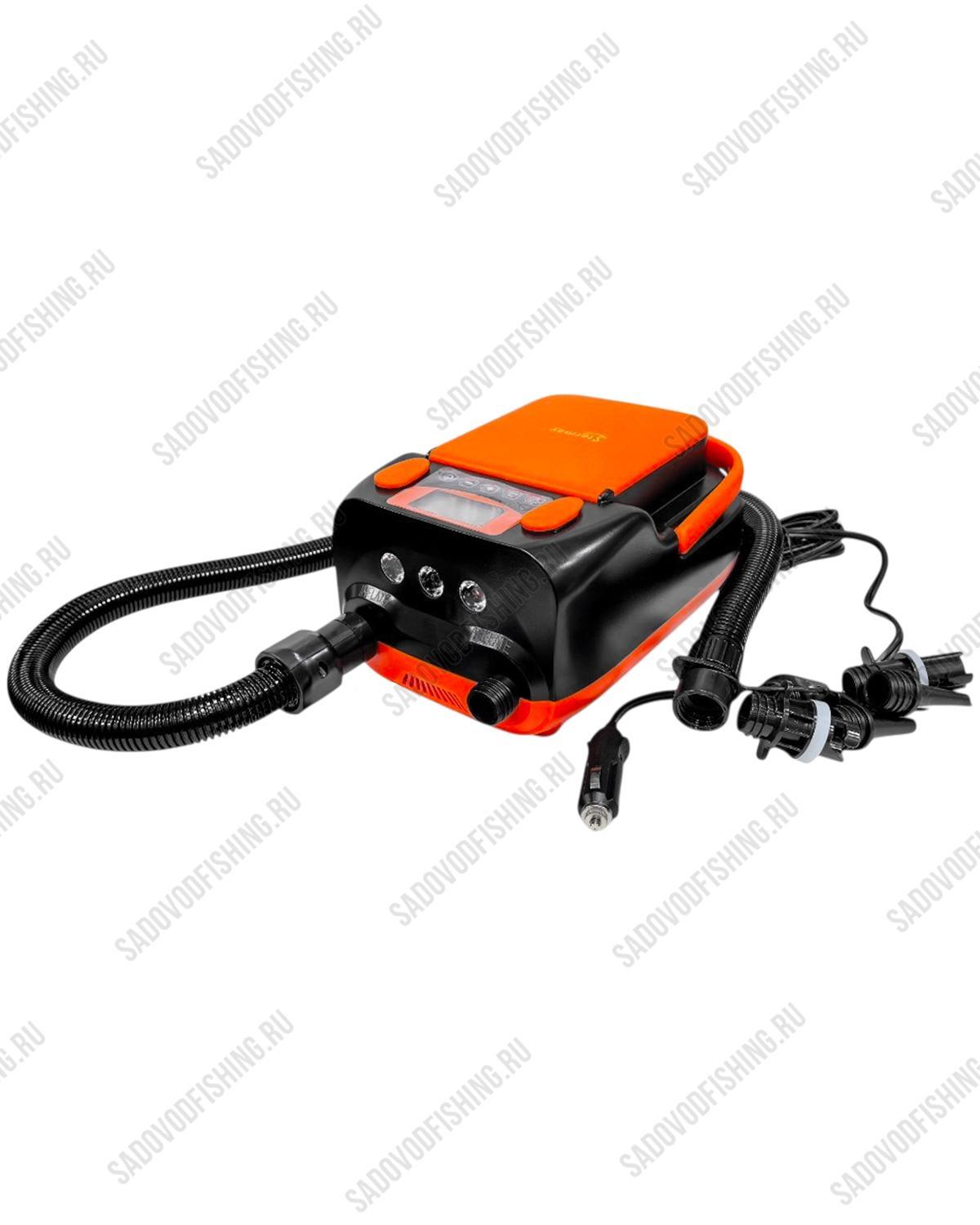 Насос электрический Osprey HT-790 - обладает двухступенчатой накачкой и автоматическим отключением, что обеспечивают лёгкое, удобное накачивание и откачивание воздуха. Обладает двумя ступенями, 1-я ступень насоса предназначена для максимальной скорости 350л в минуту, а 2-я ступень для максимального давления 70л минуту. Функция автоматического отключения выключает насос при достижении целевого давления или по достижении максимального времени непрерывной работы. Работает от встроенного аккумулятора. Заряжается от сети 220В и автомобильного прикуривателя. Оснащен встроенным в корпус фонариком и удобной ручкой для переноски. Имеет USB-разъёмы для зарядки мобильных устройств. Производительность 350л в минуту. Давление накачивания 0-1,1бар. Длина провода зарядки до прикуривателя - 3м. Длина шланга - 1,10м. Температурный режим работы: от -10 С до +50С. Время непрерывной работы составляет 30 минут. Ёмкость аккумулятора: 6000mAh.