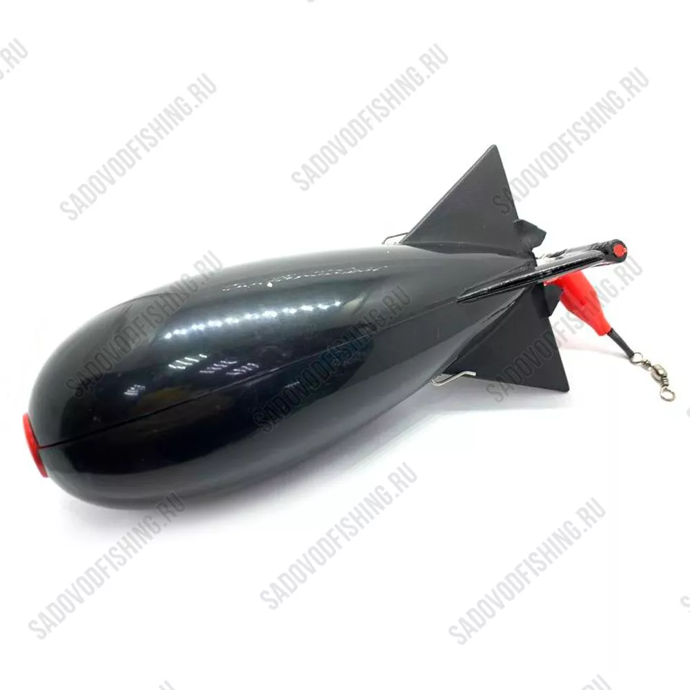 Закормочная кормушка для карповой ловли, выглядящая как авиабомба со стабилизаторами. Её аэродинамическая форма позволяет выполнять точный заброс на дальние расстояния в любых условиях, даже в ветреную погоду. Прикормка помещается внутрь кормушки, кормушка закрывается и забрасывается в точку лова. При ударе об воду срабатывает запорный механизм, открывая кормушку.