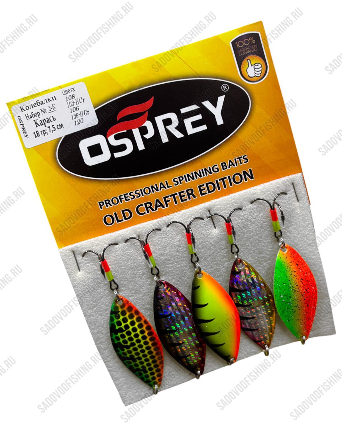 Набор колеблющихся блесен Osprey Карась 2-К - в упаковке 5шт. Рыболовные блесны изготовлены из высококачественной стали и покрыты специальной, стойкой к истиранию, гальваникой. Приманки могут эксплуатироваться в любых климатических условиях – и зимой с ее лютыми морозами, и летом, с его палящим солнцем и высокой влажностью.