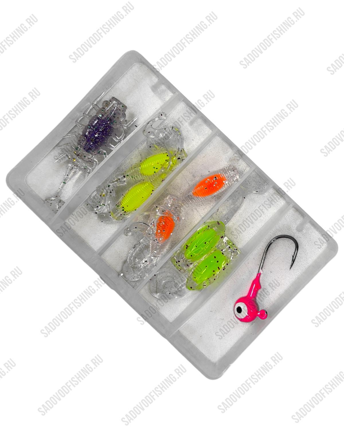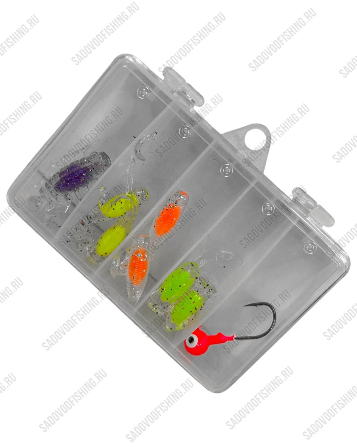 Набор приманок в кейсе Kumyang - поставляется в кейсе, что делает его удобным в транспортировки и использовании. Кейс выполнен из пластика полупрозрачного цвета, что позволяет увидеть содержимое не открывая крышки. Приманки выполнены из прочного силикона, в комплект входит джиг-головка для оснащения. В набор входят приманки разных цветов, формы и размера.